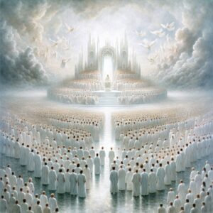 I thought, “Wow! It is huge!” I saw groups of people in white gowns flying ahead. “Who are they?” I asked. The angel replied, “They are the ones who had served God faithfully and trusted in Jesus by obeying and following the lead of the Holy Spirit with all their heart. Their bodies are dead on Earth. They are now the souls heading toward Heaven.”